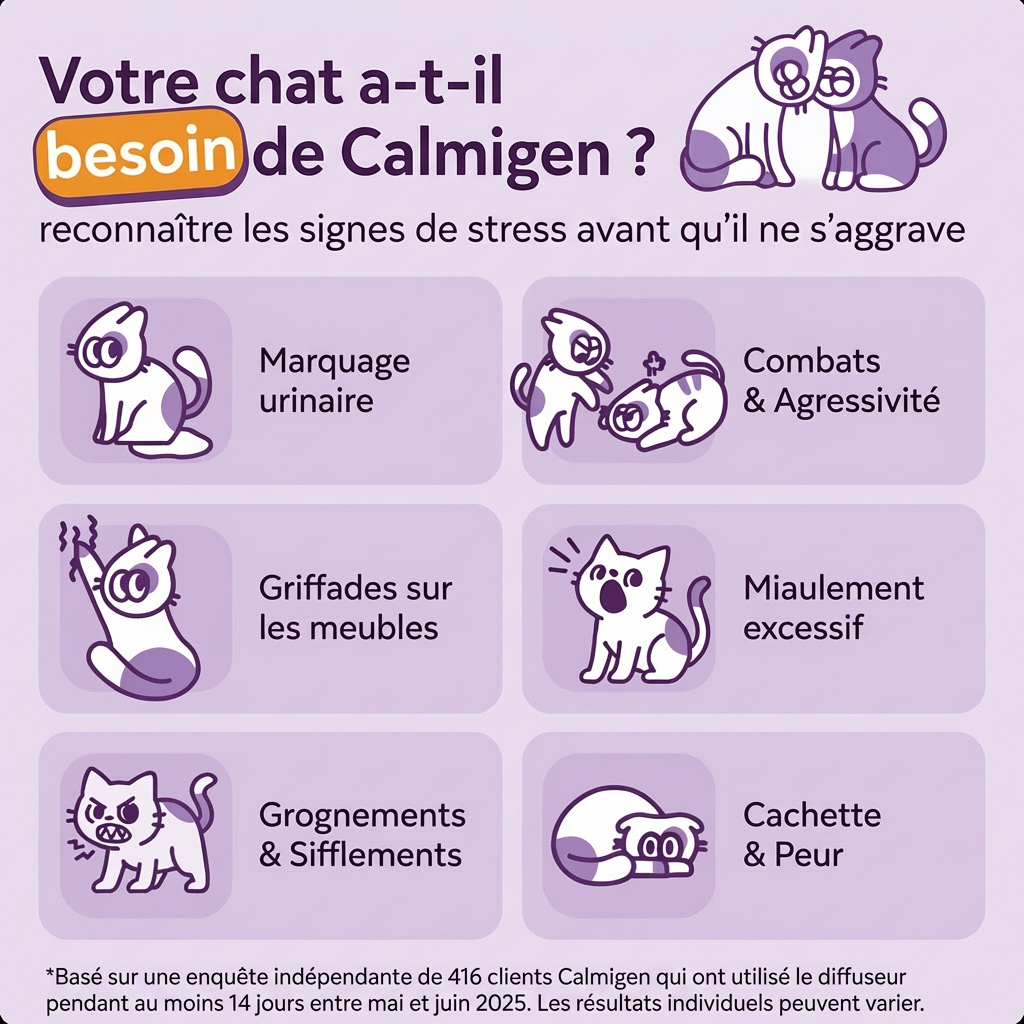 Ce qu'elles font : Naturellement produites par les chats pour marquer un territoire sûr, signalant confort et sécurité.